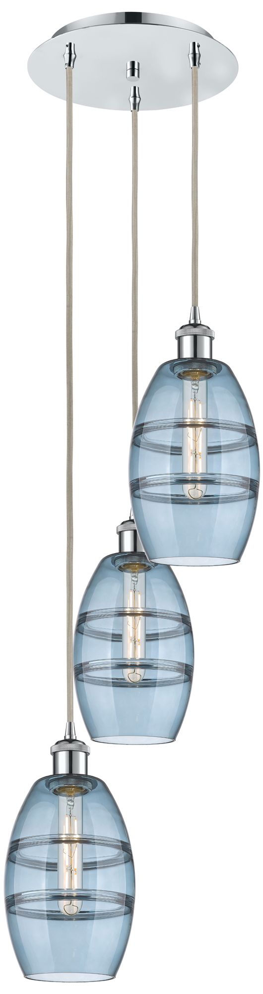 Ballston Vaz 12.38"W 3-Light Polished Chrome Corded Pendant w/ Blue Sh