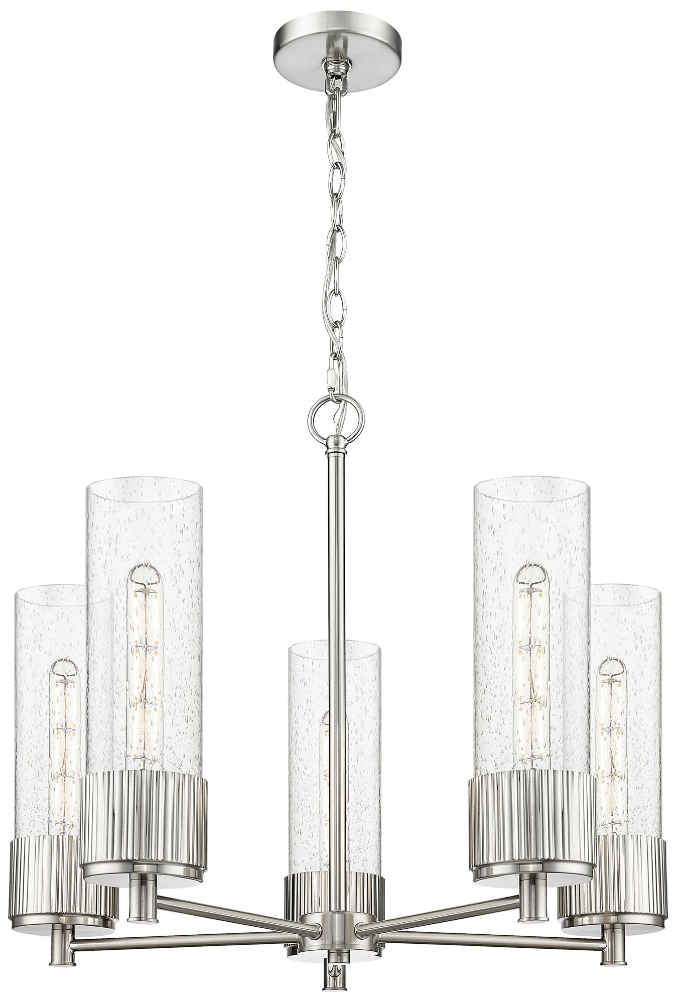 Bolivar 25"W 5 Light Satin Nickel Chain Hung Chandelier With Seedy Sha