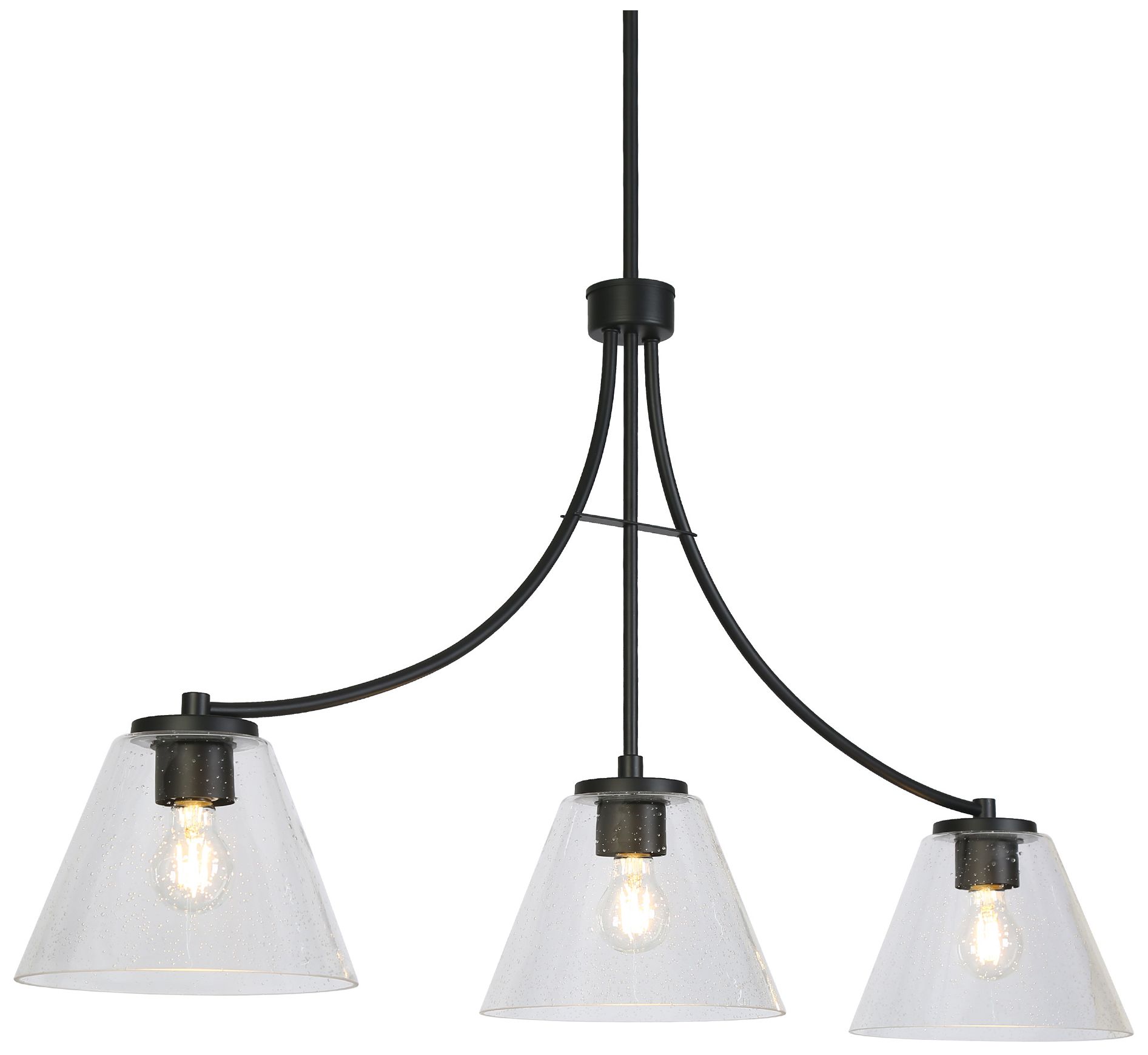 Oriame 42.1" Wide Black 3-Light Cone Glass Island Chandelier