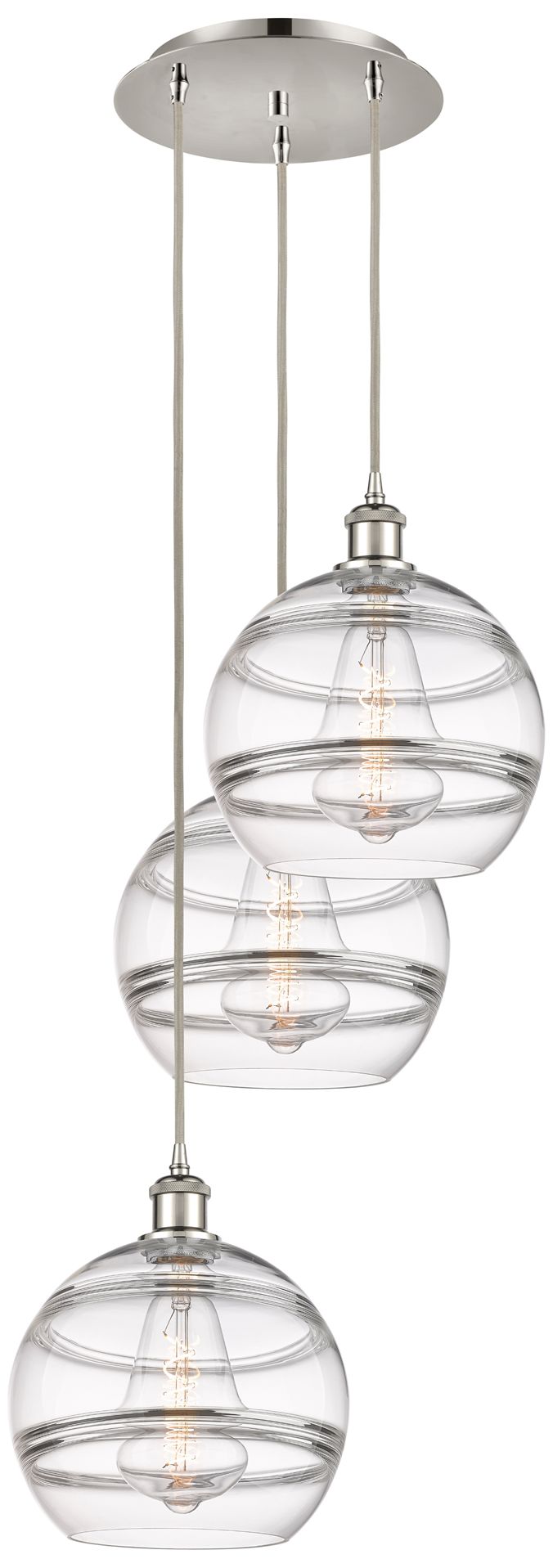Rochester 16.5"W 3-Light Polished Nickel Cord Pendant w/ Clear Shade