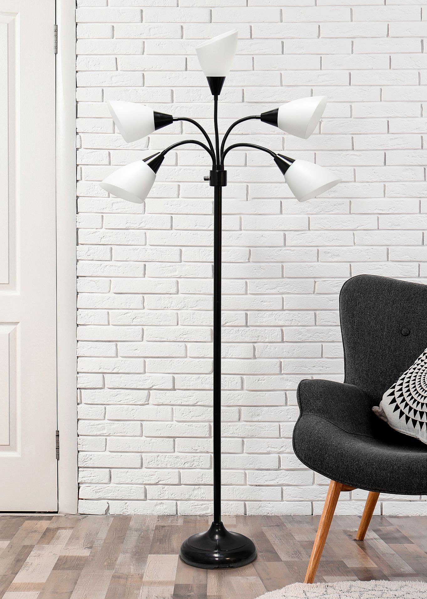 Simple Designs 67" Black Gooseneck Floor Lamp with White Shades