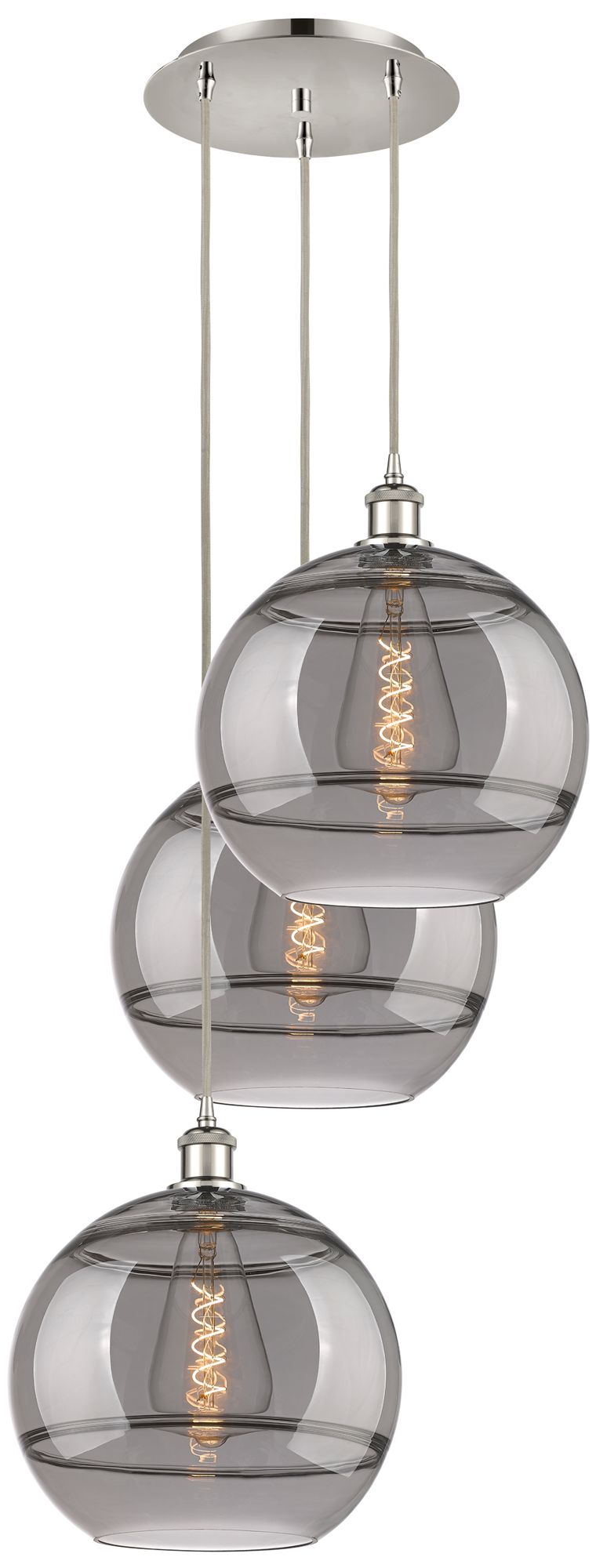 Rochester 18.5"W 3-Light Polished Nickel Cord Pendant w/ Smoke Shade