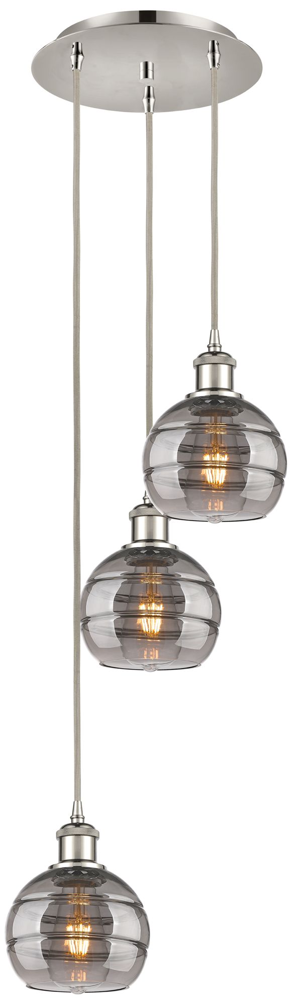 Ballston Rochester 13"W 3-Light Polished Nickel Cord Pendant w/ Smoke