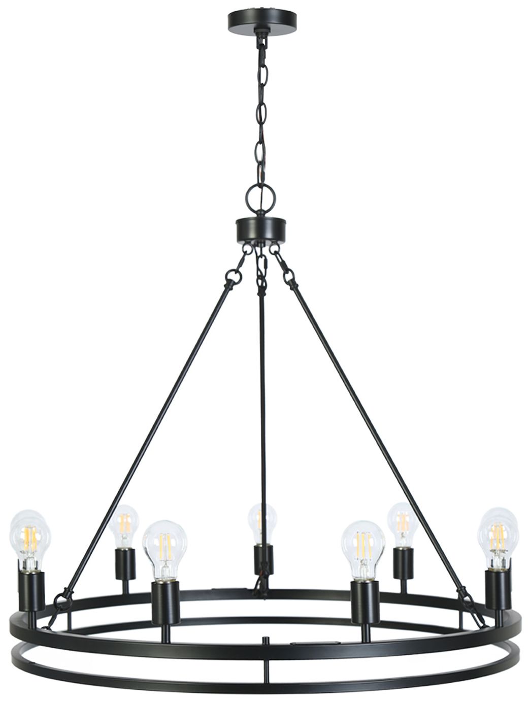 Oriame 31.9" Wide Black 9-Light Wheel Chandelier