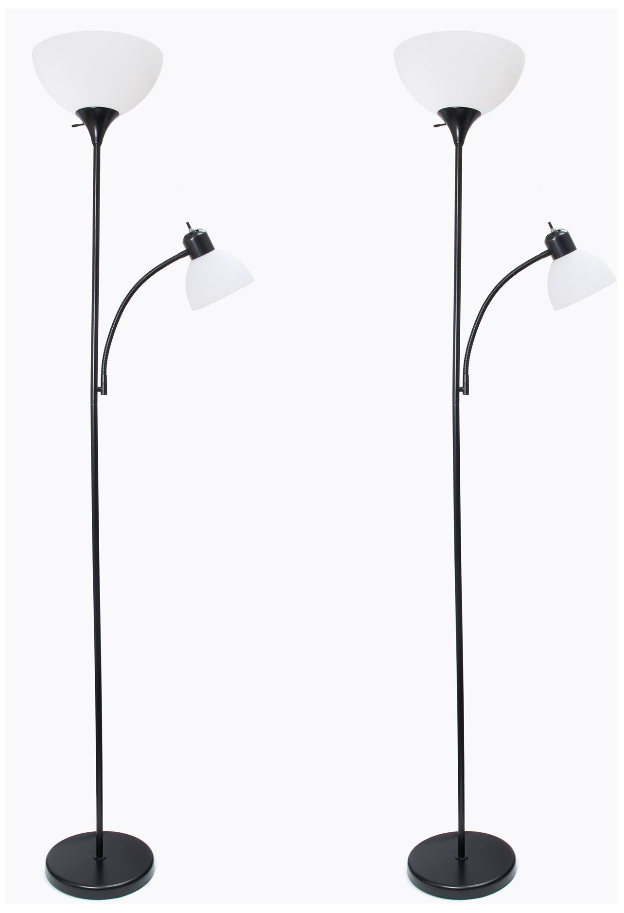 Simple Designs 71.5" Floor Lamp with Reading Light 2 Pack Set, Black