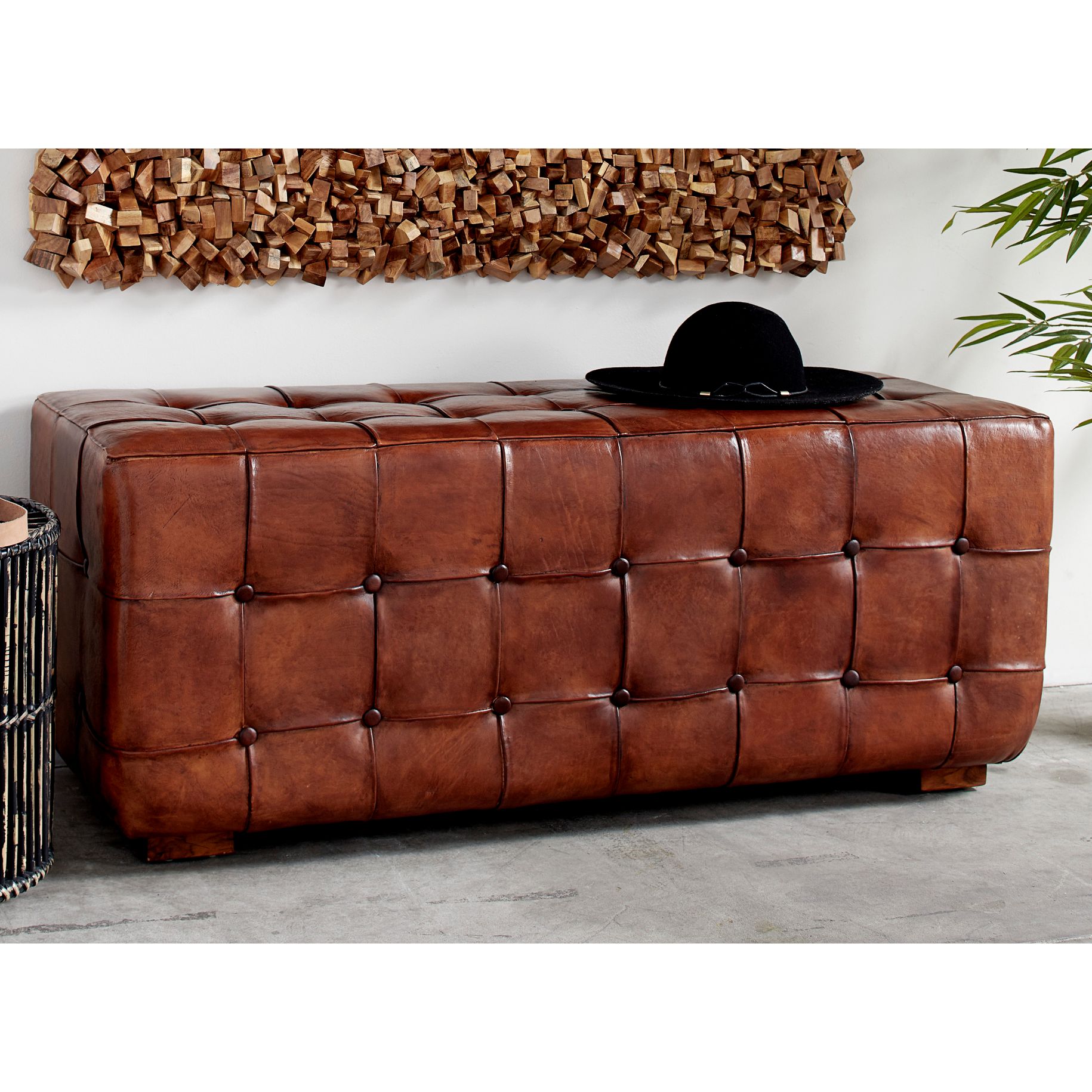 Gladys 48" Wide Brown Cow Leather Rectangular Tufted Bench