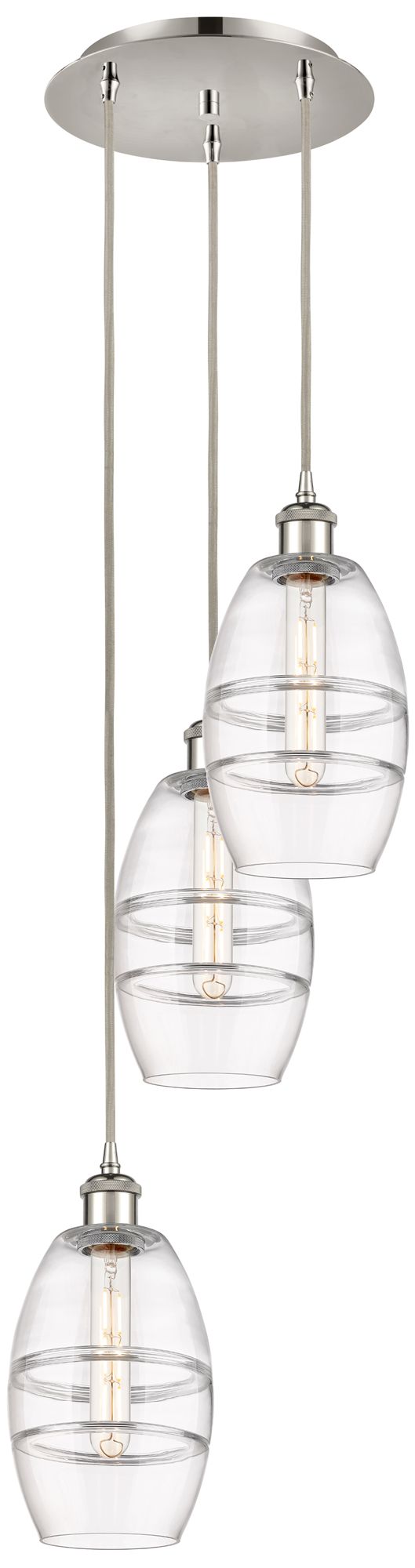 Ballston Vaz 12.38"W 3-Light Polished Nickel Corded Pendant w/ Clear S