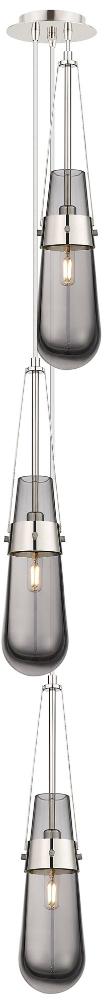 Newton Bell 15.5"W 3 Light Polished Nickel Multi Pendant w/ Smoke Shad