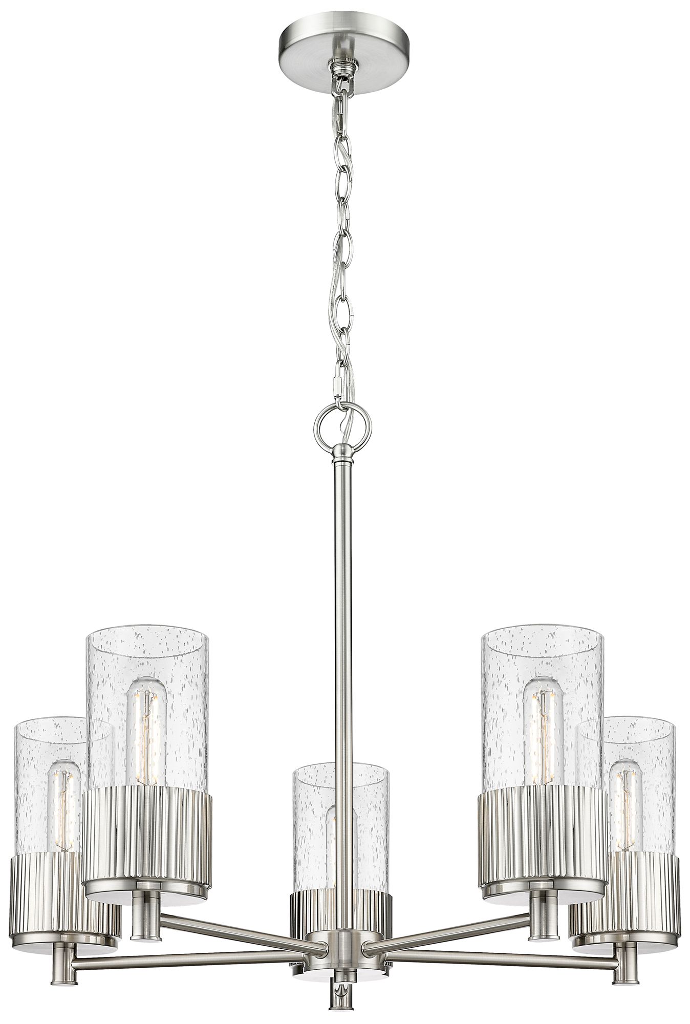 Bolivar 25"W 5 Light Satin Nickel Chain Hung Chandelier With Seedy Sha