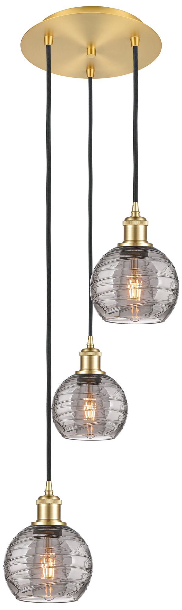 Ballston Athens 12.38"W 3-Light Gold Corded Pendant w/ Smoke Swirl Sha