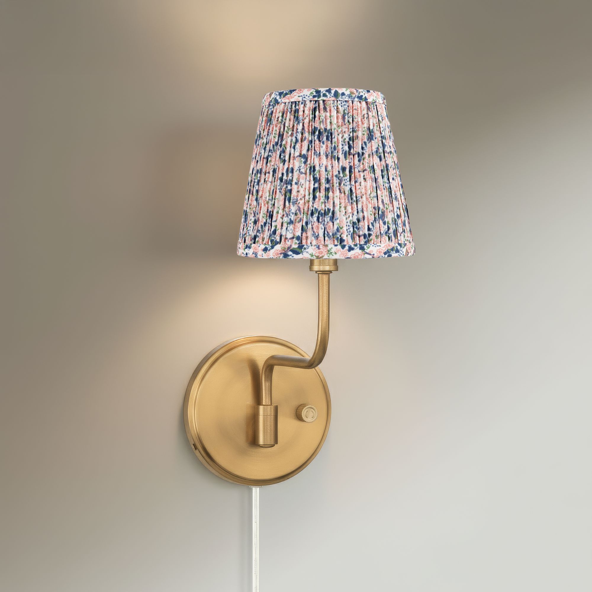 Ophelia 9 1/2"H Warm Brass Plug-In Wall Sconce Blue Pink Floral Shade