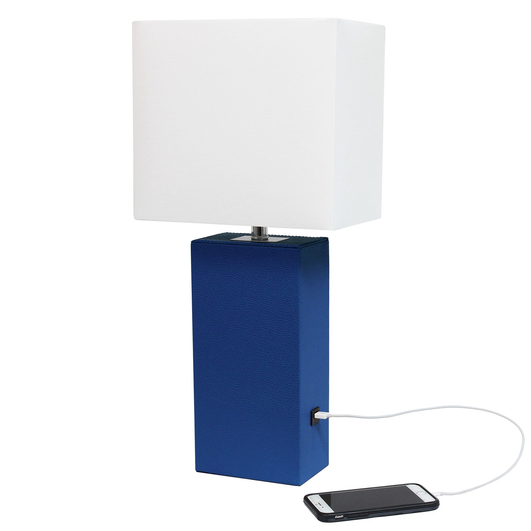 Elegant Designs 21" Leather Wrapped Lamp w/ USB Port, Blue, With LED B