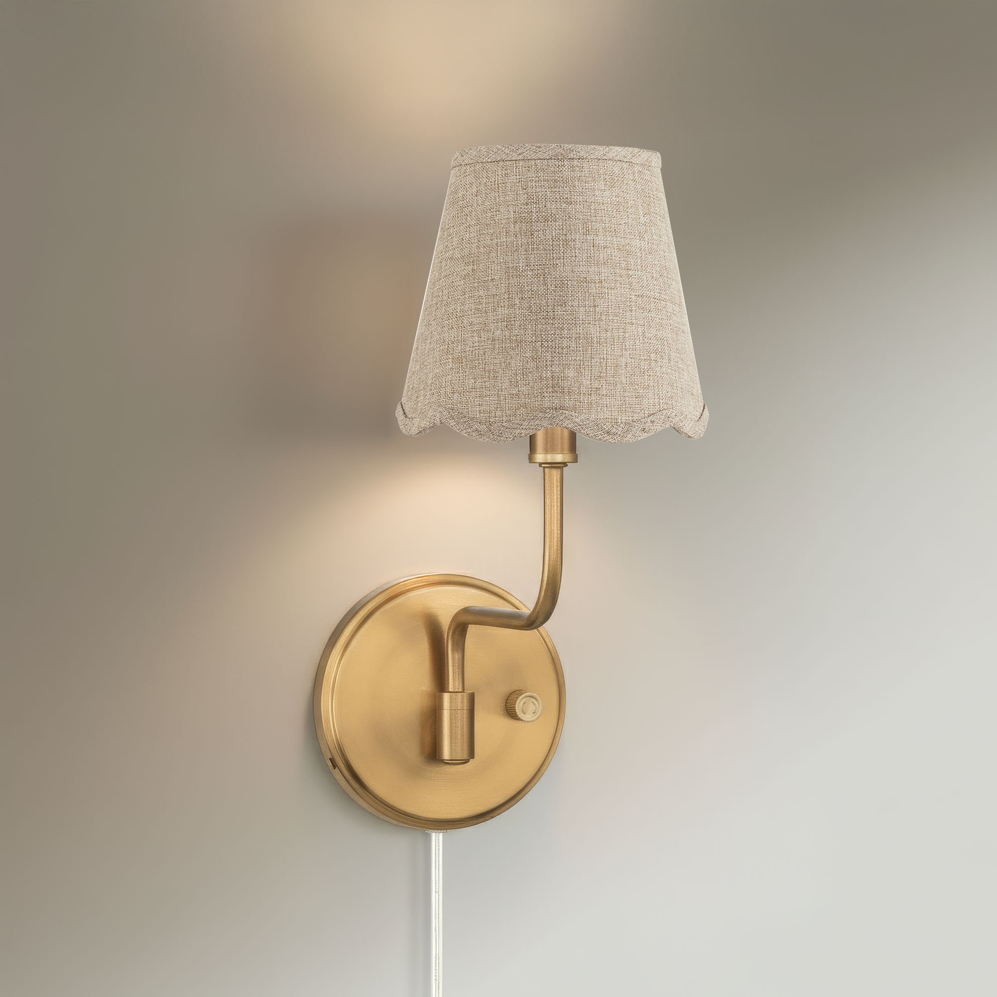 Ophelia 9 1/2"H Warm Brass Plug-In Wall Sconce Beige Scallop Shade