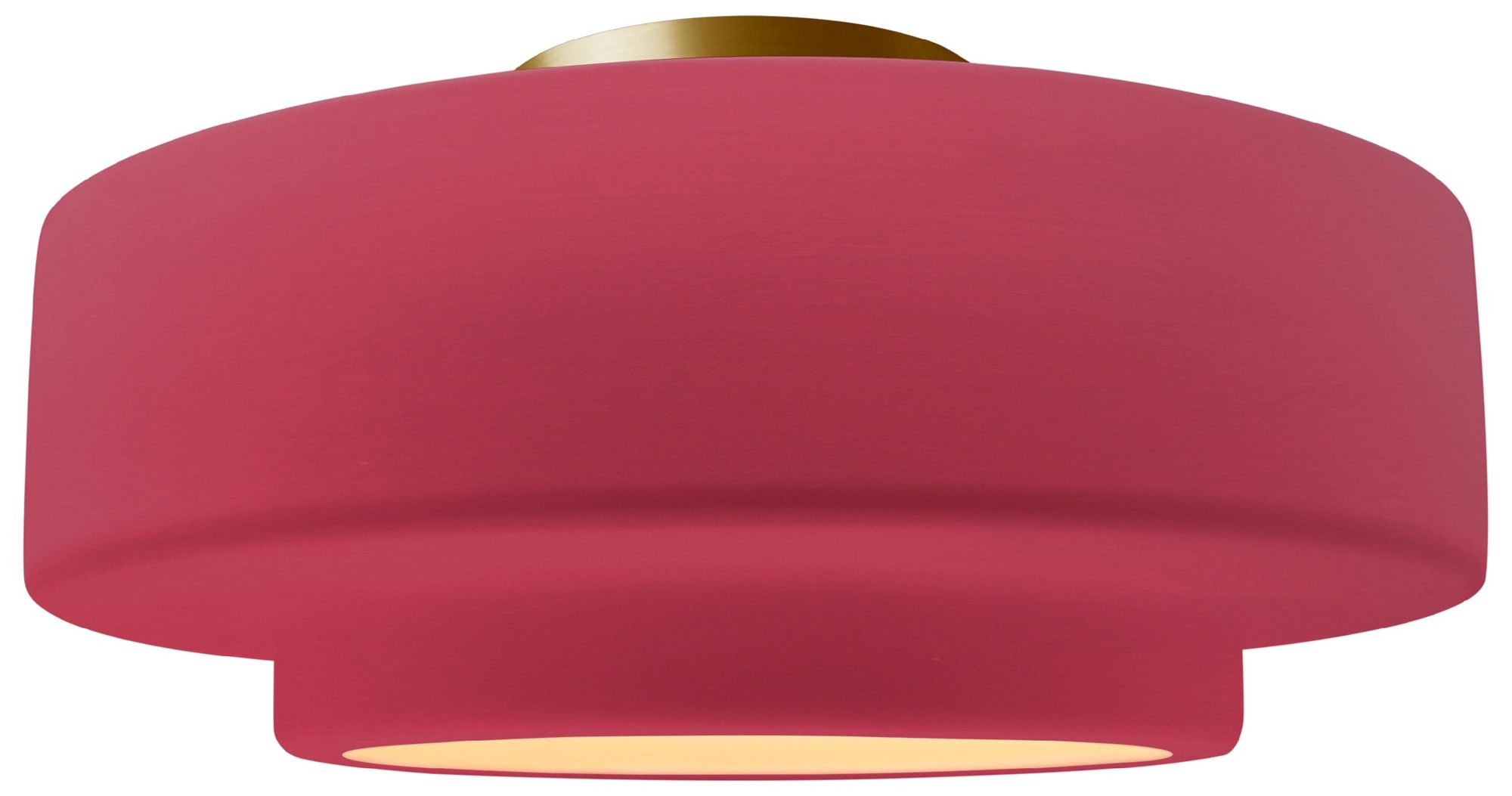 Radiance 14.5"W Cerise Frame Brushed Brass Metal Medium Tier Semi.Flus