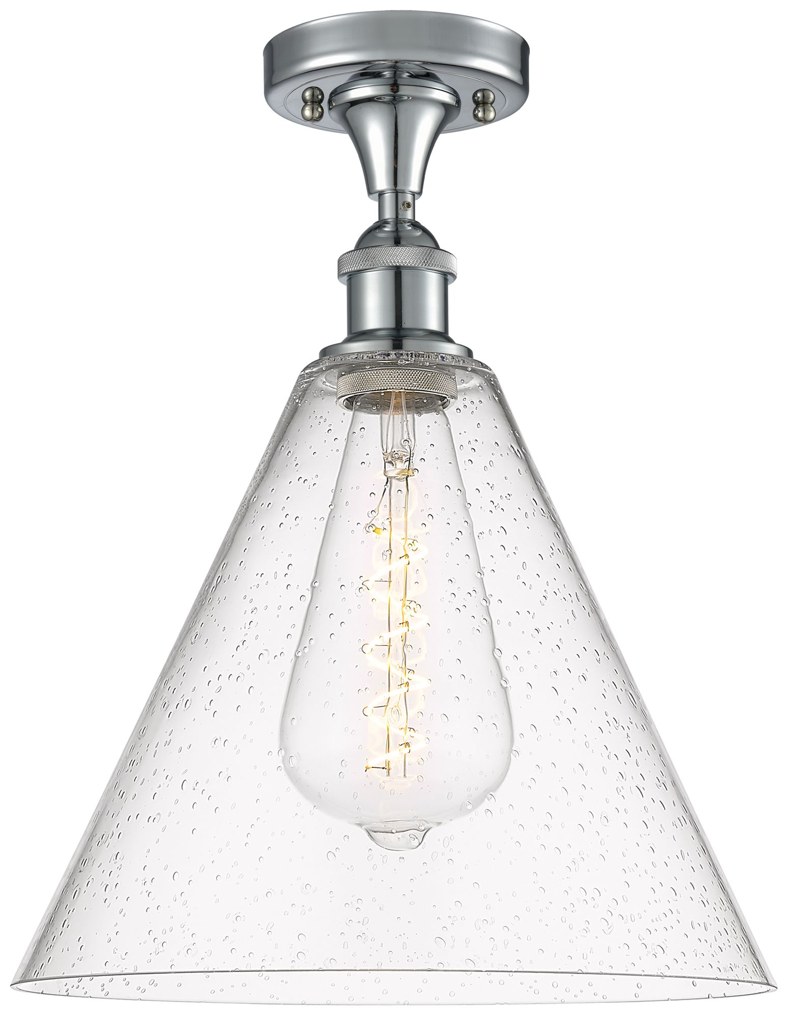 Berkshire Glass 12" Semi-Flush Mount - Polished Chrome - Seedy Shade
