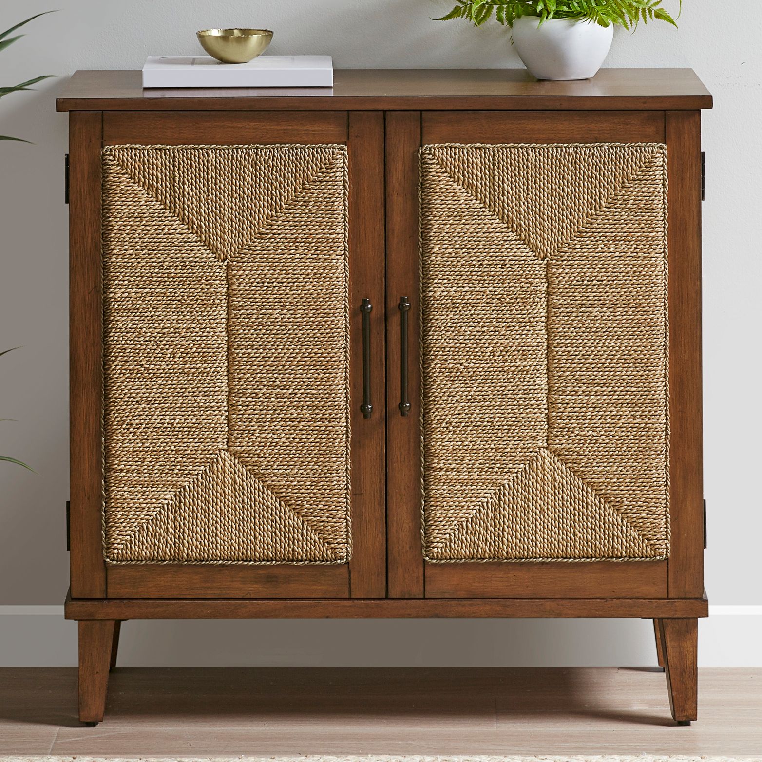 Seagate 36"W Pecan Wood Natural Seagrass 2-Door Accent Chest