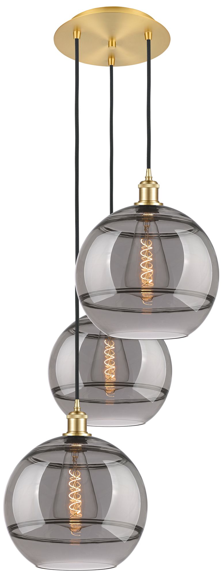 Ballston Rochester 18.5"W 3-Light Satin Gold Corded Pendant w/ Smoke S