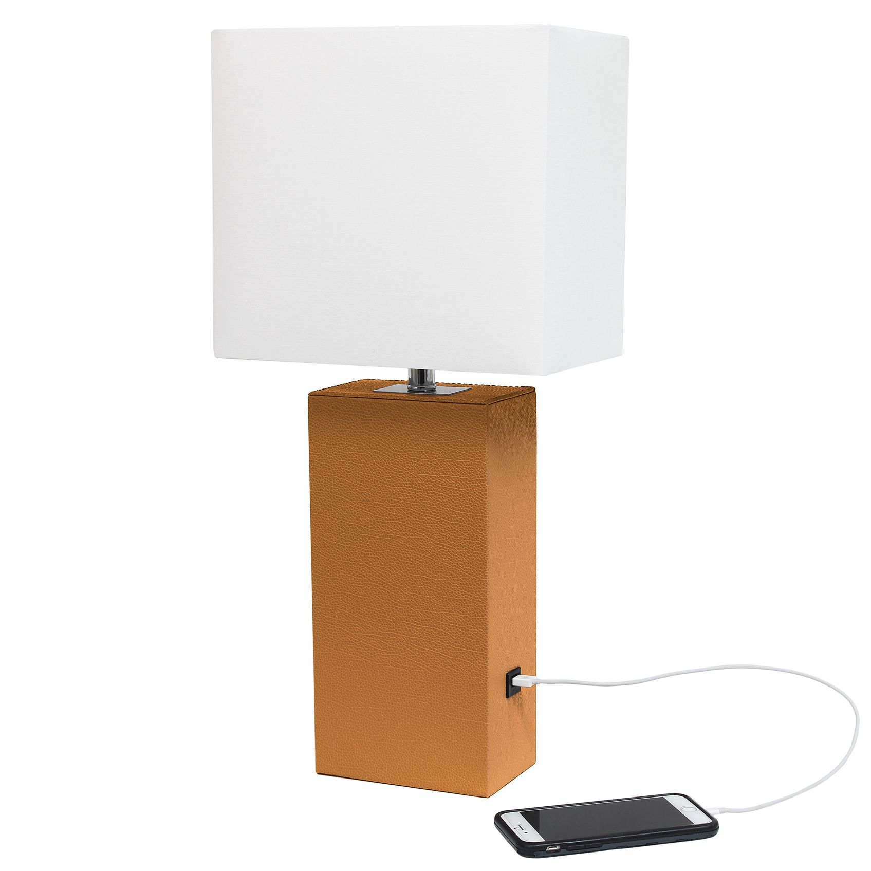 Elegant Designs 21" Leather Wrapped Lamp w/ USB Port, Tan, With LED Bu