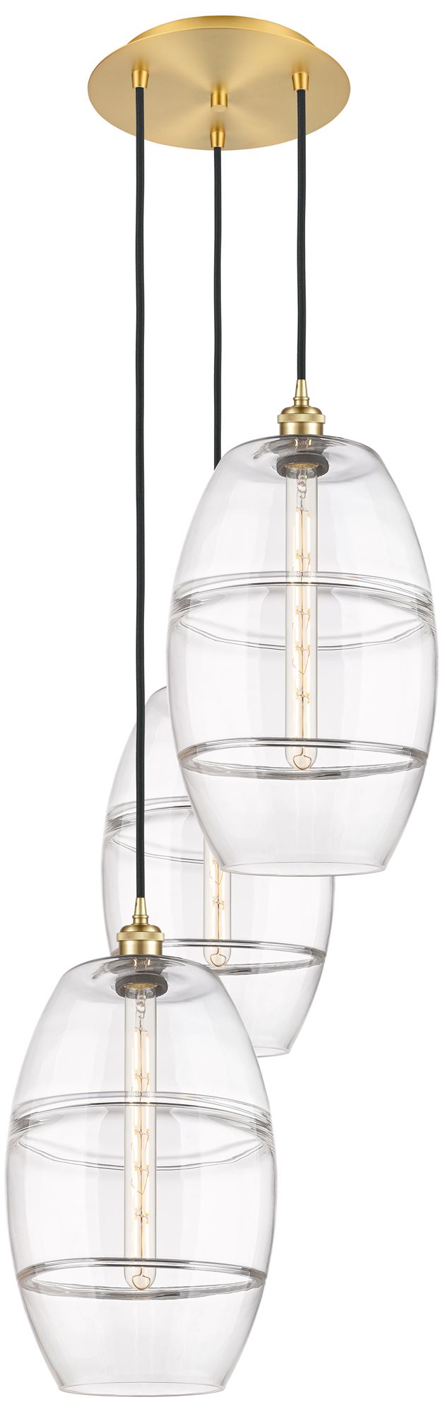 Ballston Vaz 16.5"W 3-Light Satin Gold Corded Multi Pendant w/ Clear S