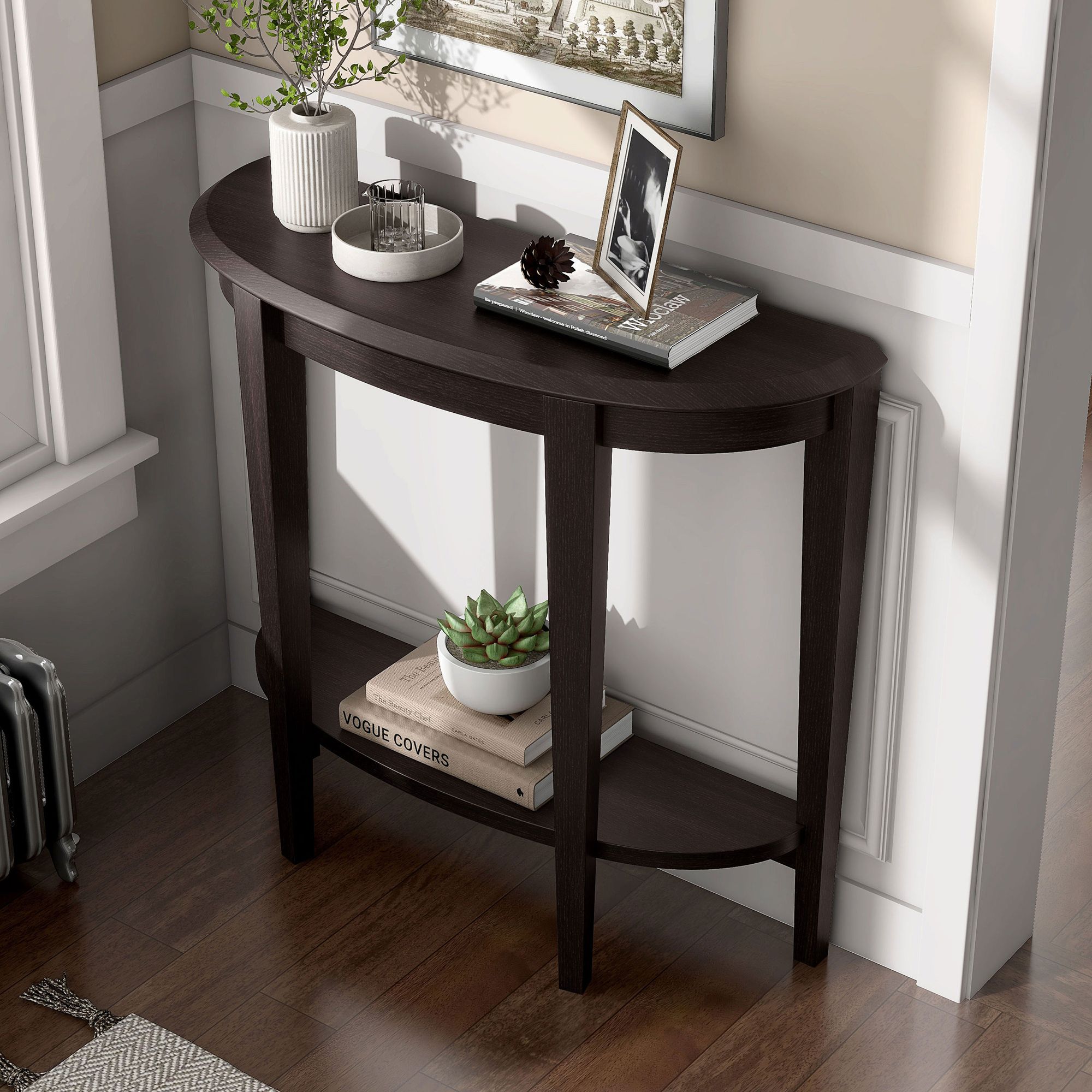 Yara 36"W Red Cocoa Wood 1-Shelf Half Round Console Table