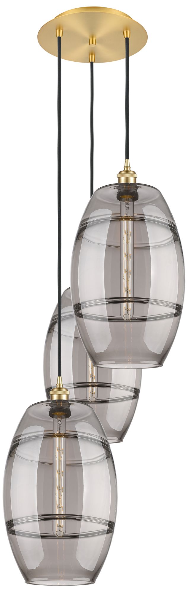 Ballston Vaz 16.5"W 3-Light Satin Gold Corded Pendant w/ Light Smoke S