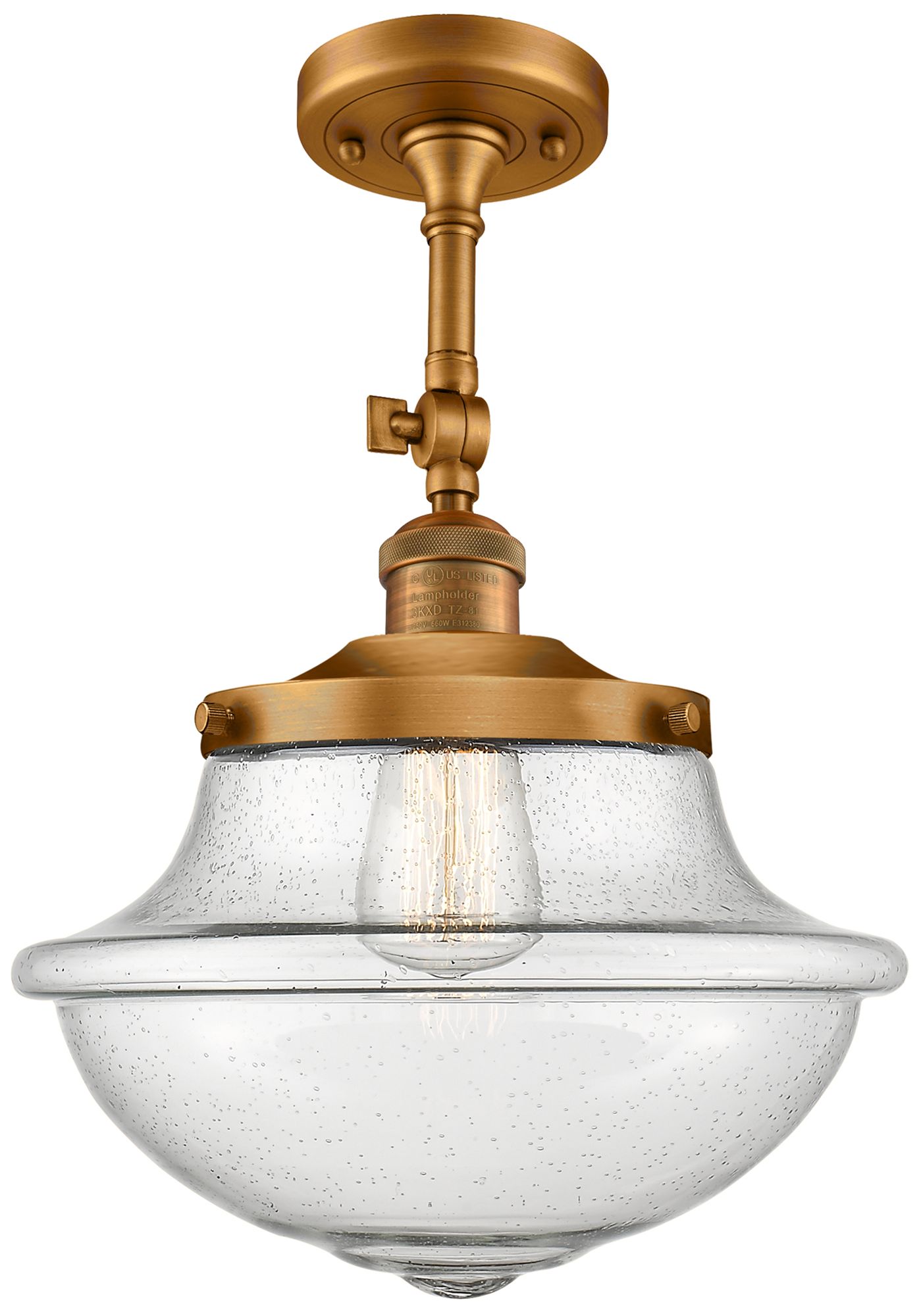 Franklin Oxford 12" Brushed Brass Adjustable Semi Flush w/ Seedy Shade