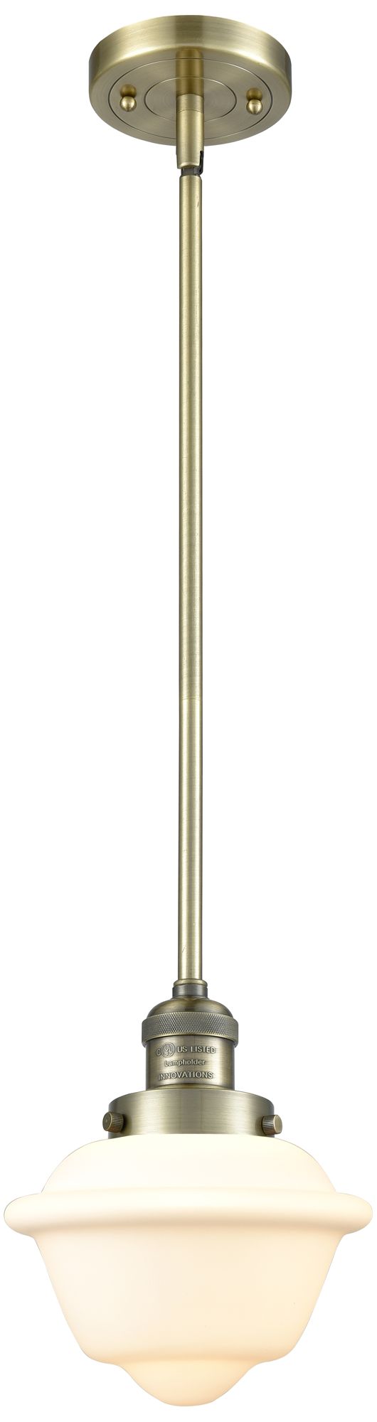 Franklin Restoration Oxford 8" Brass Stemmed Mini Pendant w/ White Sha