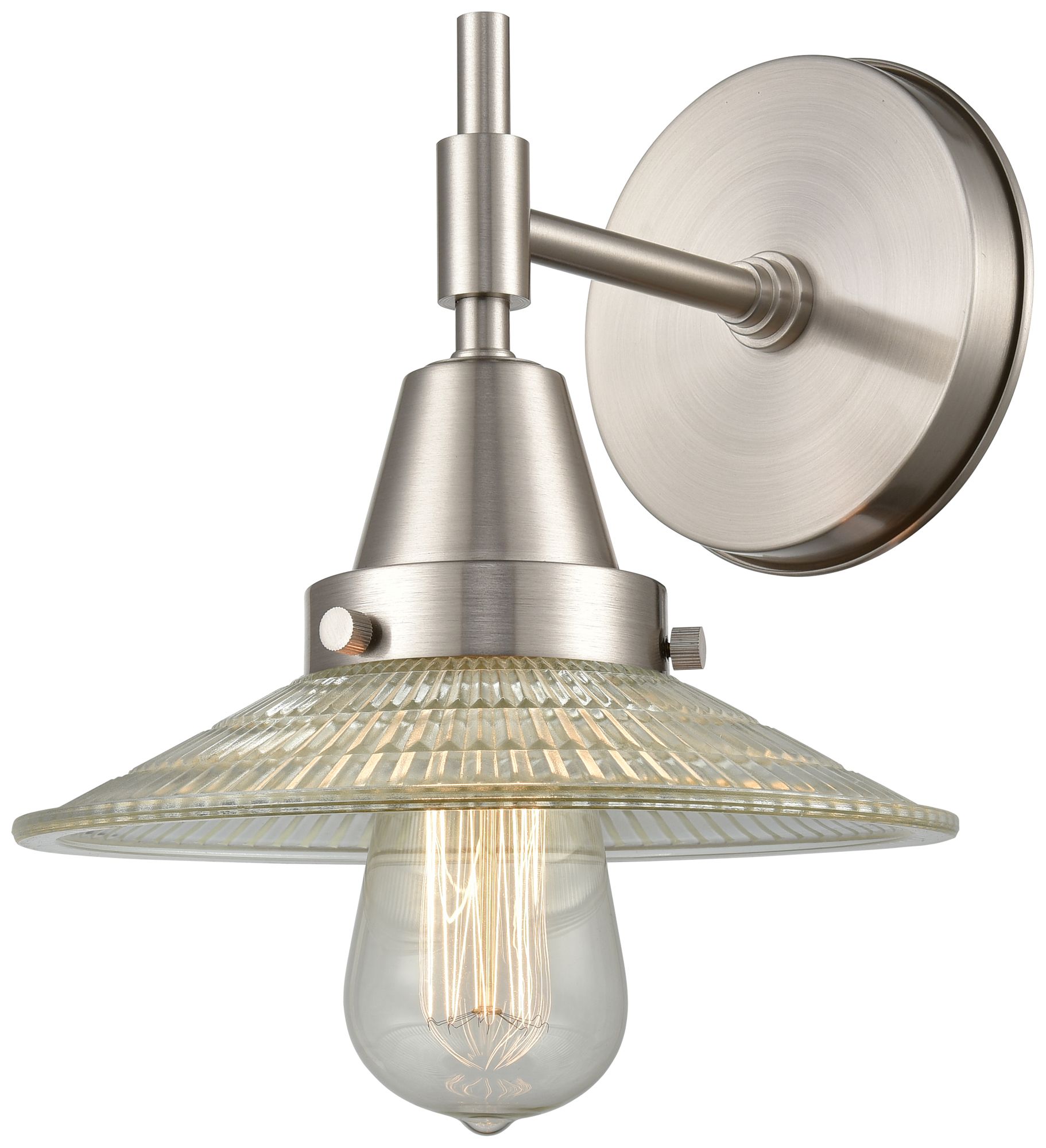 Caden Halophane 7.25" High Satin Nickel Sconce w/ Clear Halophane Shad