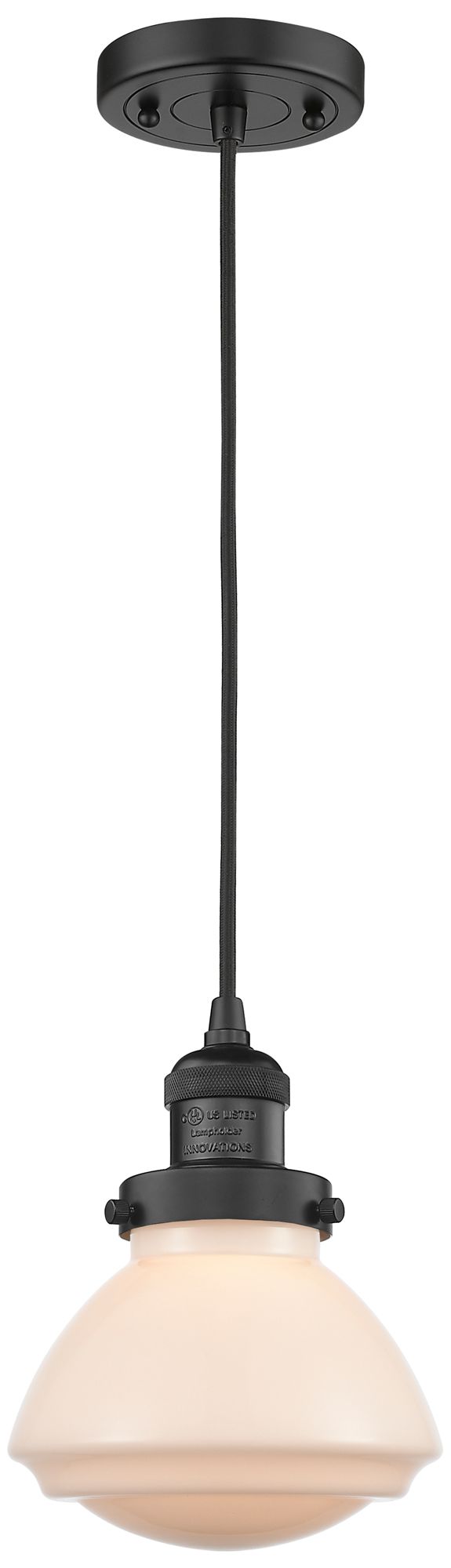 Olean 6.75" Wide Matte Black Corded Mini Pendant w/ Matte White Shade