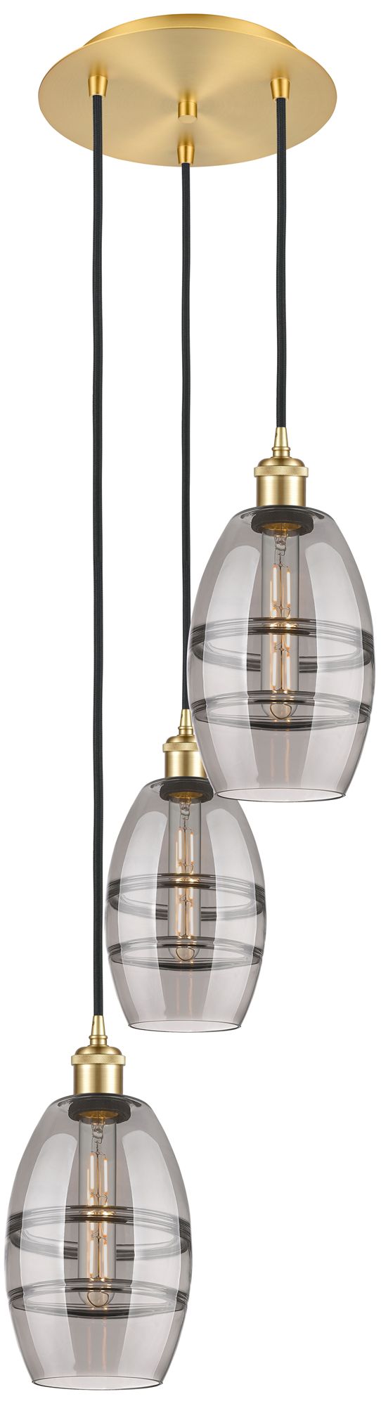 Ballston Vaz 12.38"W 3-Light Satin Gold Corded Pendant w/ Light Smoke