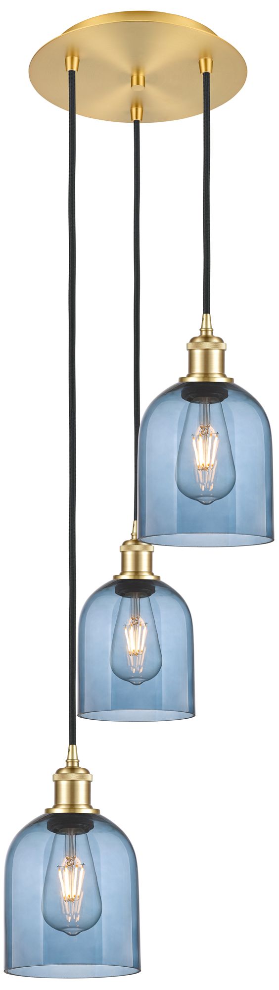 Ballston Bella 12"W 3-Light Satin Gold Corded Multi Pendant w/ Blue Sh