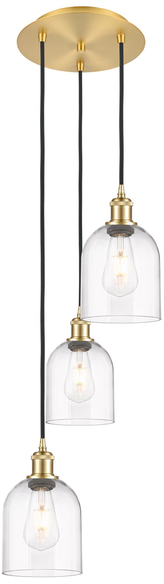 Ballston Bella 12"W 3-Light Satin Gold Corded Multi Pendant w/ Clear S