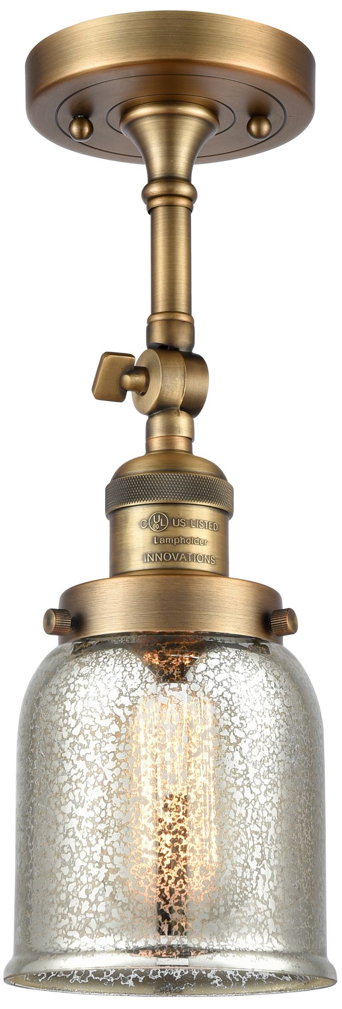 Franklin Restoration Bell 5" Brushed Brass Semi Flush w/ Mercury Shade