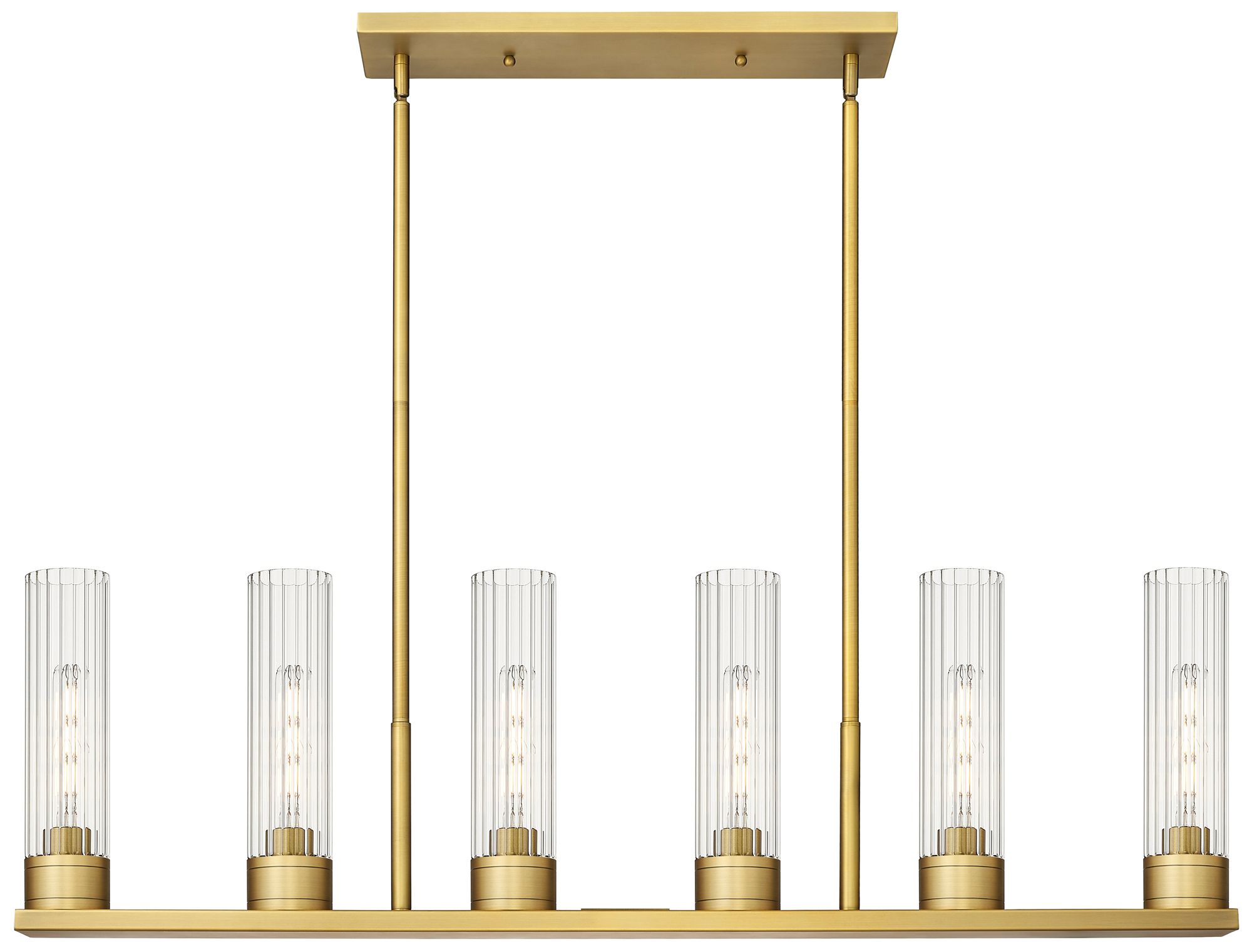 Empire 44.25"W 6 Light Brushed Brass Stemmed Linear Pendant w/ Clear S