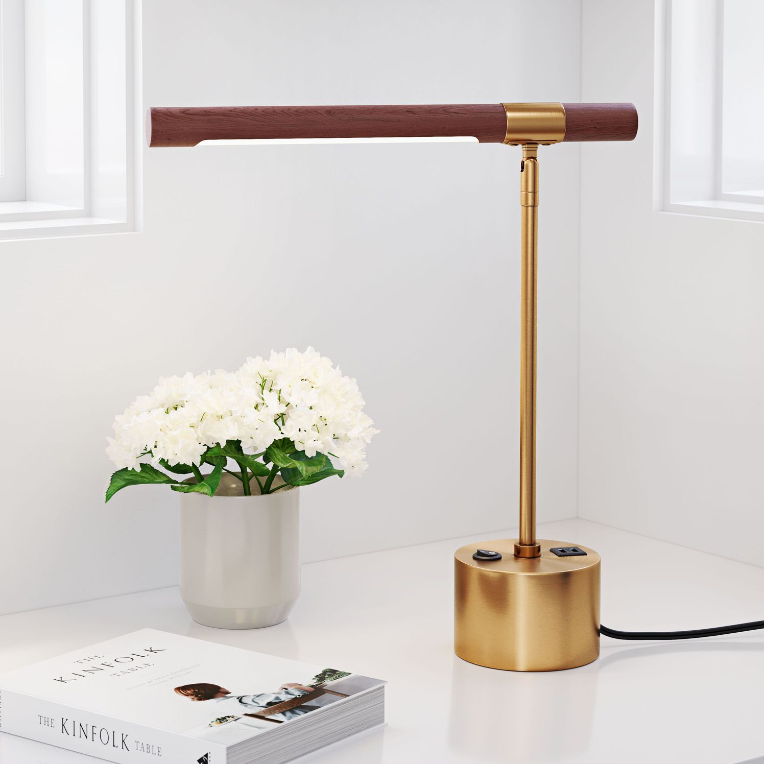 Zuo Kippy 17 3/4" High Wood and Brass Modern LED Reading Lamp with USB