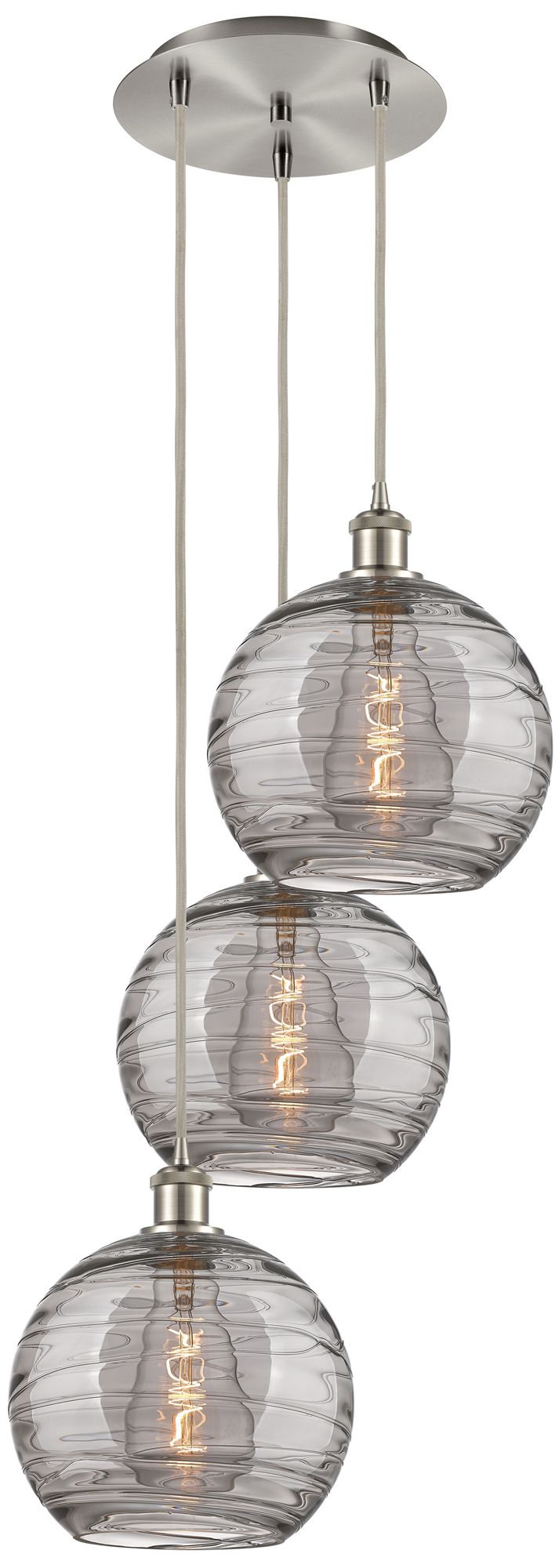 Athens 16.5"W 3-Light Satin Nickel Cord Pendant w/ Smoke Swirl Shade