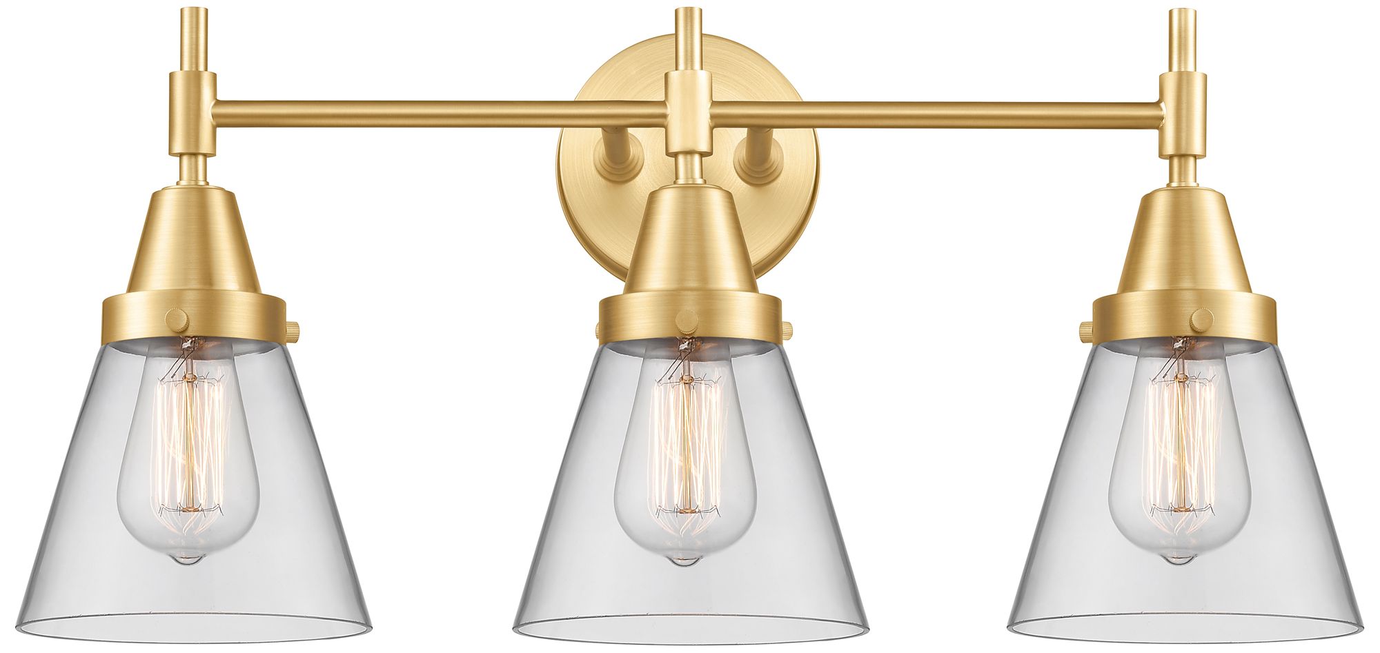Caden Cone 6" 3 Light 24" LED Bath Light - Satin Gold - Clear Sha