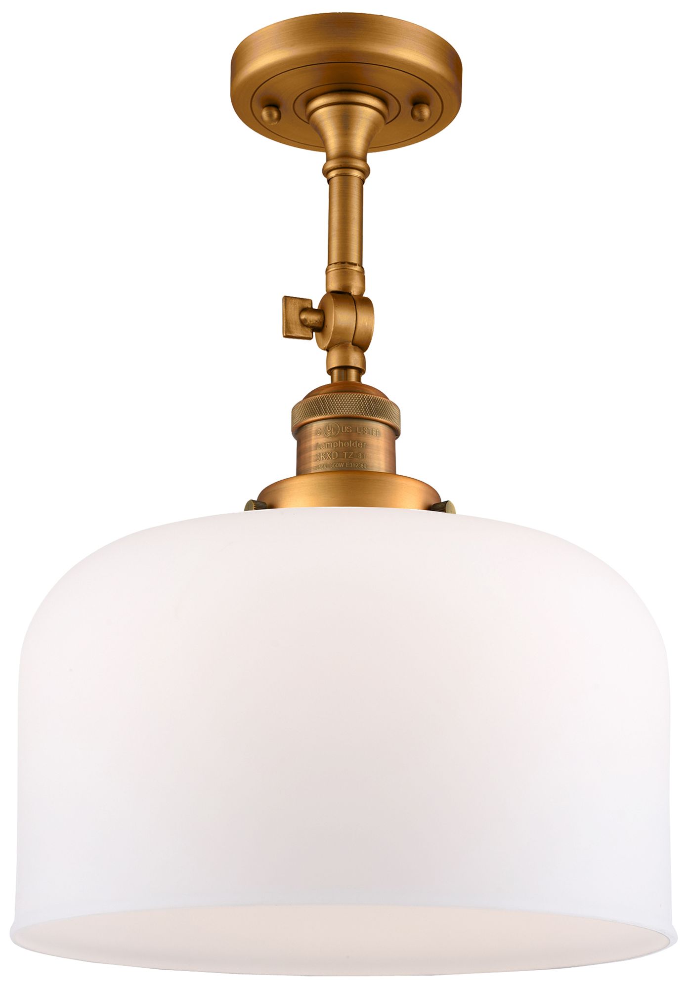 Franklin Restoration Bell 12" Brushed Brass Semi Flush Mount w/ White