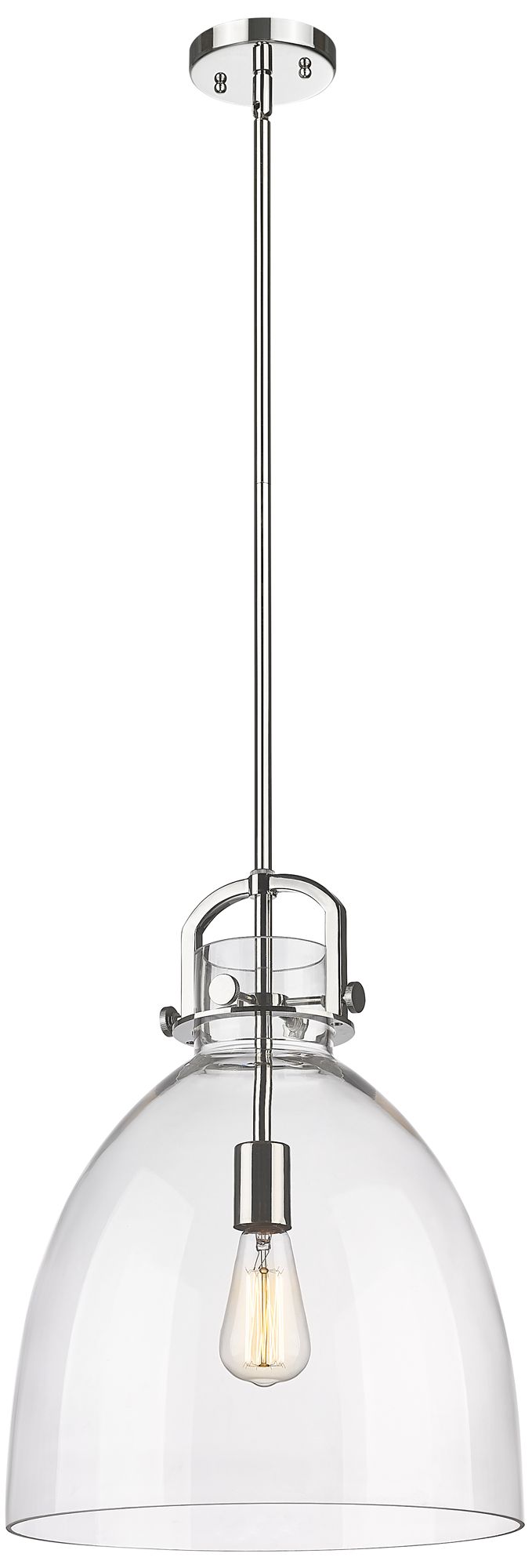Newton Bell 14" Wide Stem Hung Polished Nickel Pendant With Clear Shad