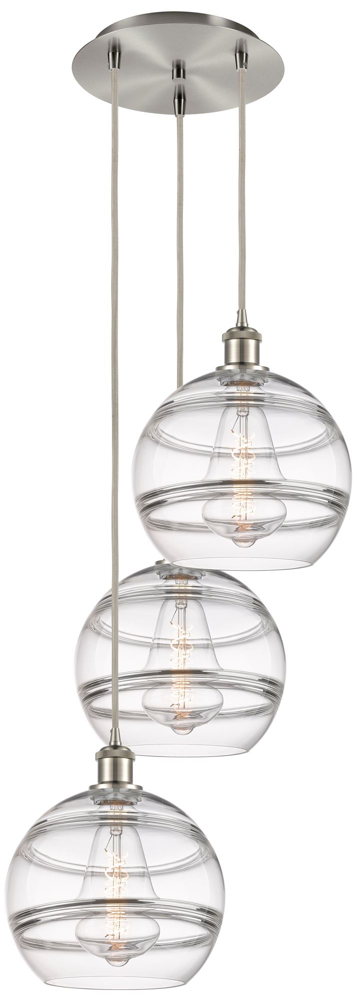 Ballston Rochester 16.5"W 3-Light Satin Nickel Cord Pendant w/ Clear S