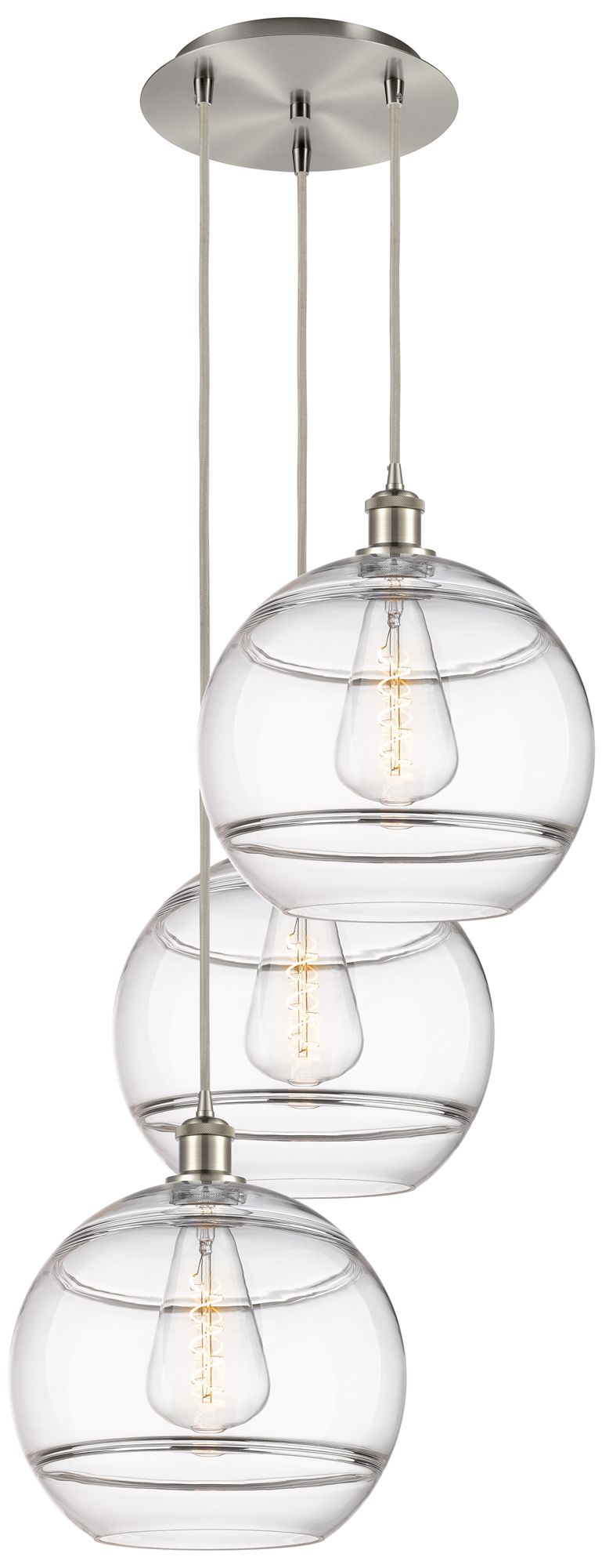 Ballston Rochester 18.5"W 3-Light Satin Nickel Cord Pendant w/ Clear S