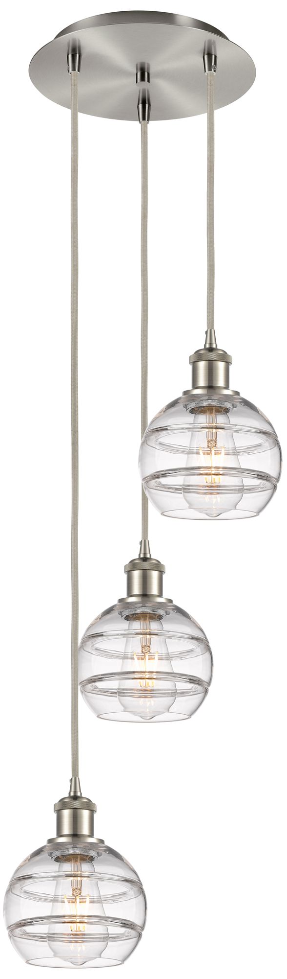 Ballston Rochester 12.38"W 3-Light Satin Nickel Cord Pendant w/ Clear
