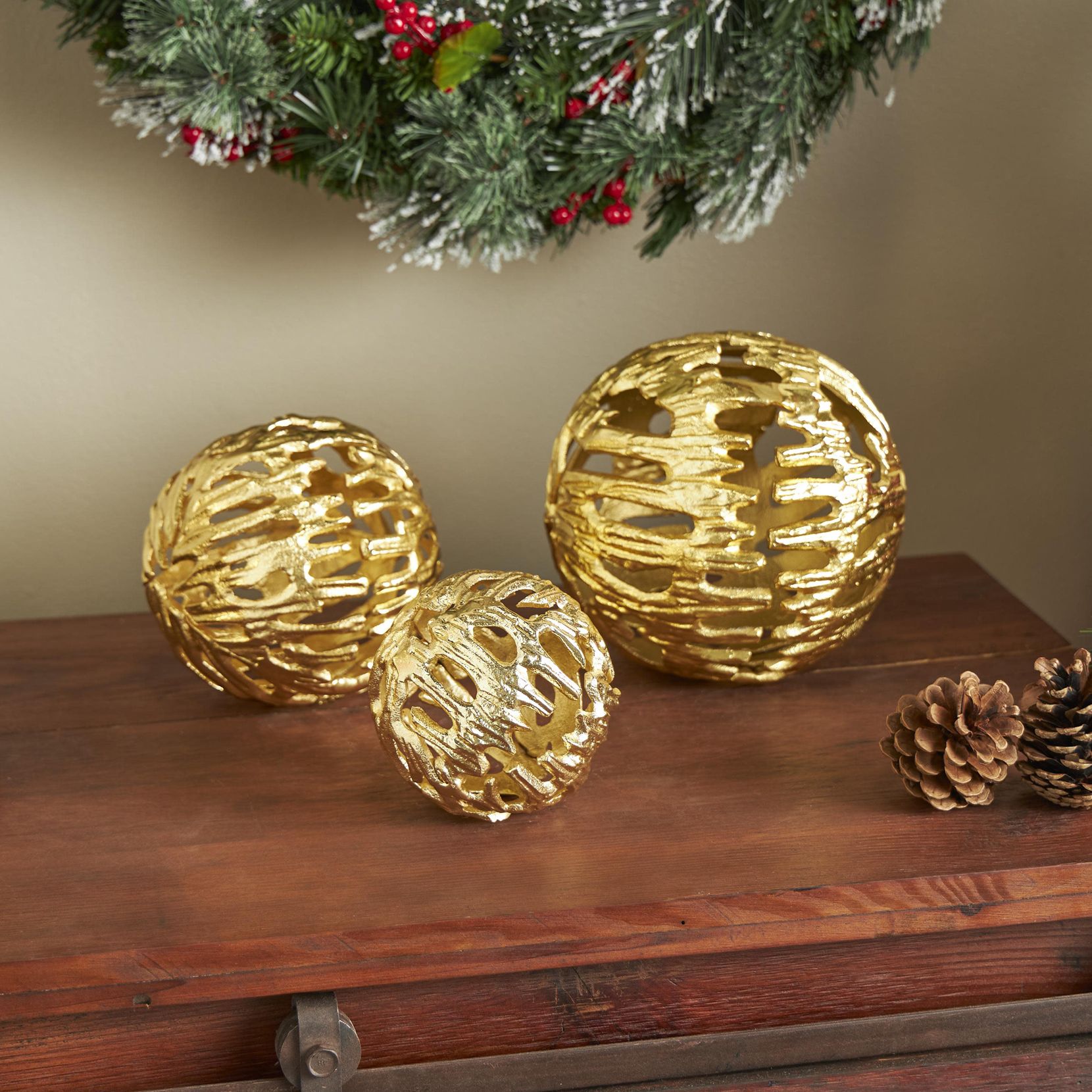 Gold Aluminum Metal Contemporary Orbs & Vase Filler, S/3 7", 6", 4"H