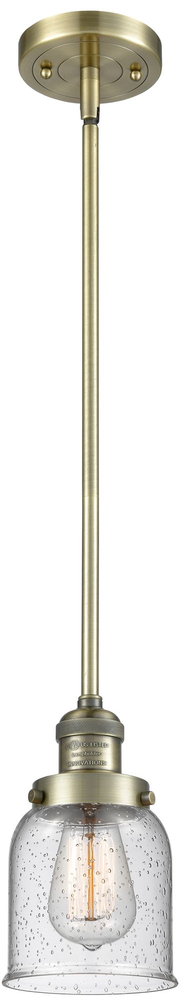 Franklin Restoration Bell 5" Brass Stemmed Mini Pendant w/ Seedy Shade
