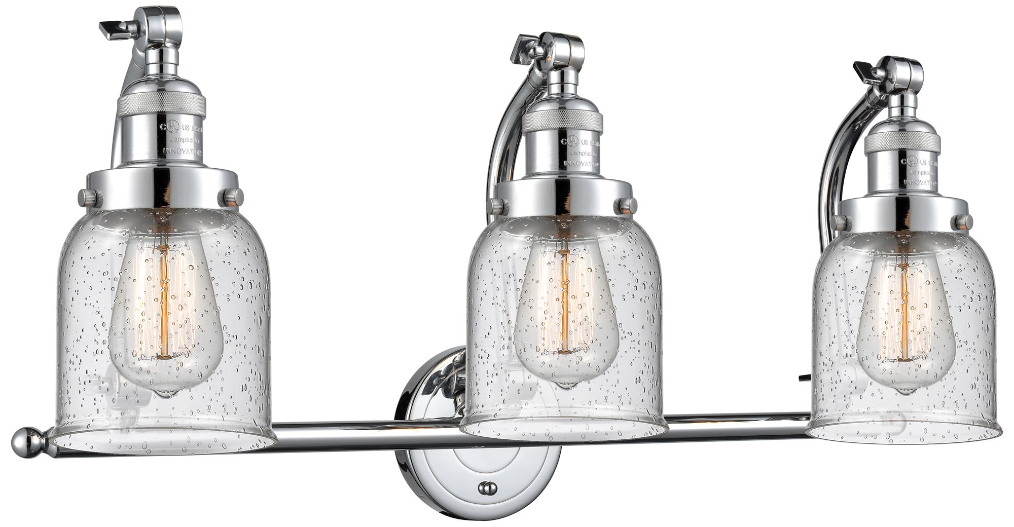Bell 28" Wide 3 Light Polished Chrome Bath Vanity Light w/ Seedy Shade