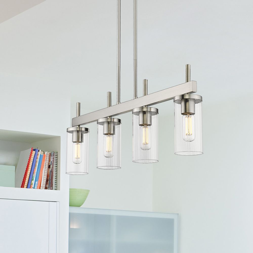 Winslett 34 5/8" Wide Pewter 4-Light Linear Pendant With Ribbed Clear