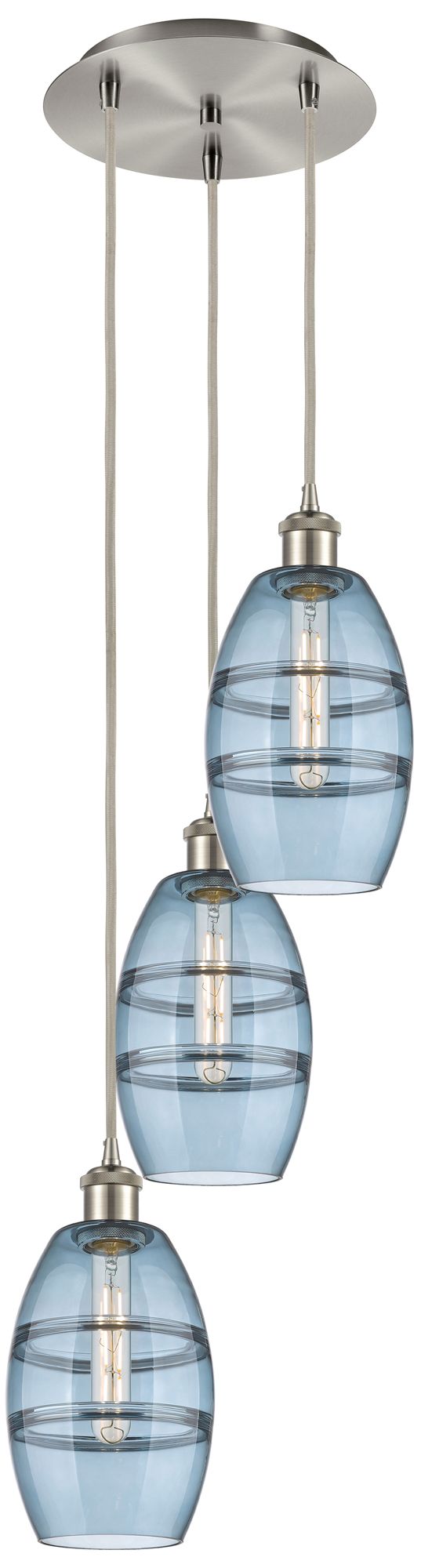 Ballston Vaz 12.38"W 3-Light Satin Nickel Corded Pendant w/ Blue Shade