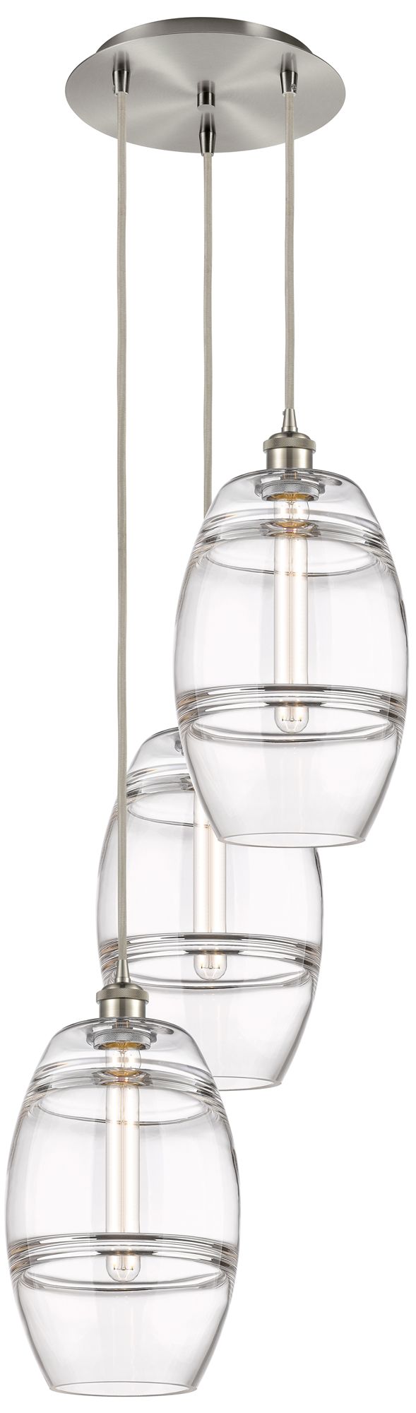 Ballston Vaz 14.5"W 3-Light Satin Nickel Corded Pendant w/ Clear Shade
