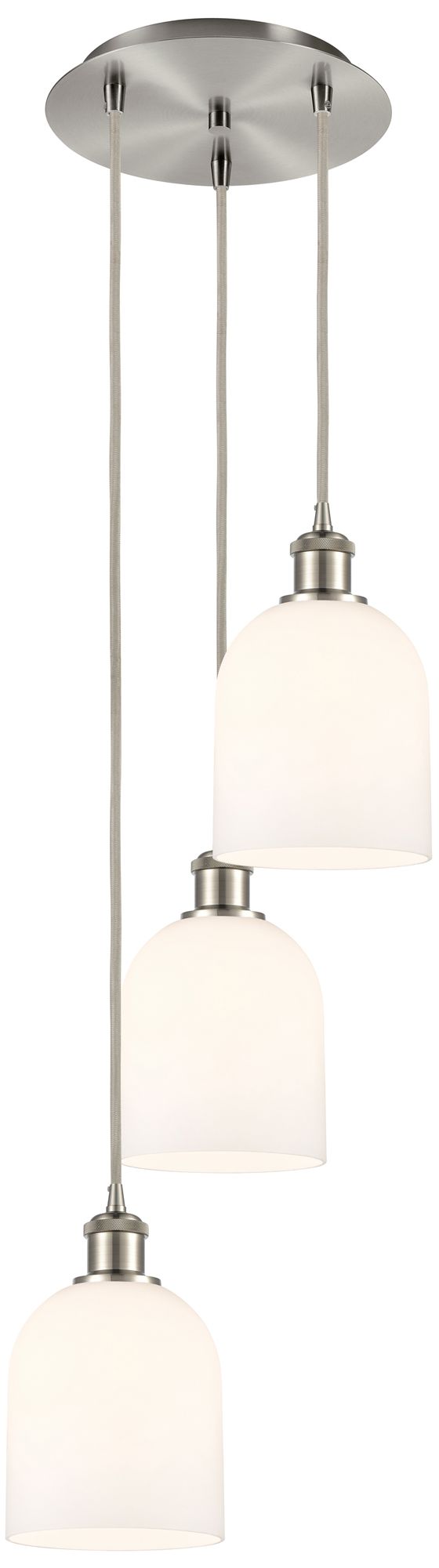 Ballston Bella 12"W 3-Light Satin Nickel Cord Pendant w/ Gloss White S