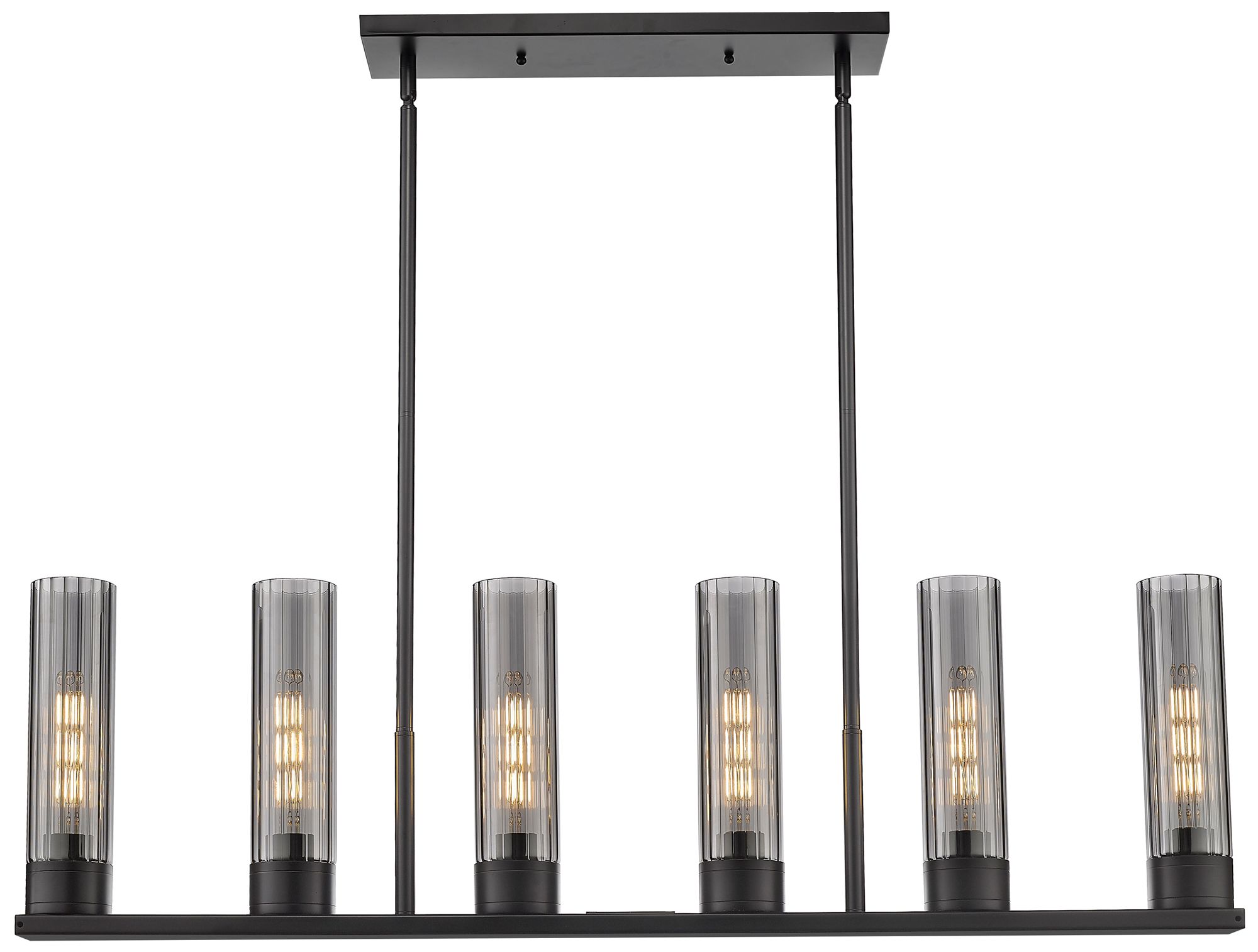 Empire 44.25"W 6 Light Black Stemmed Linear Pendant w/ Smoke Shade